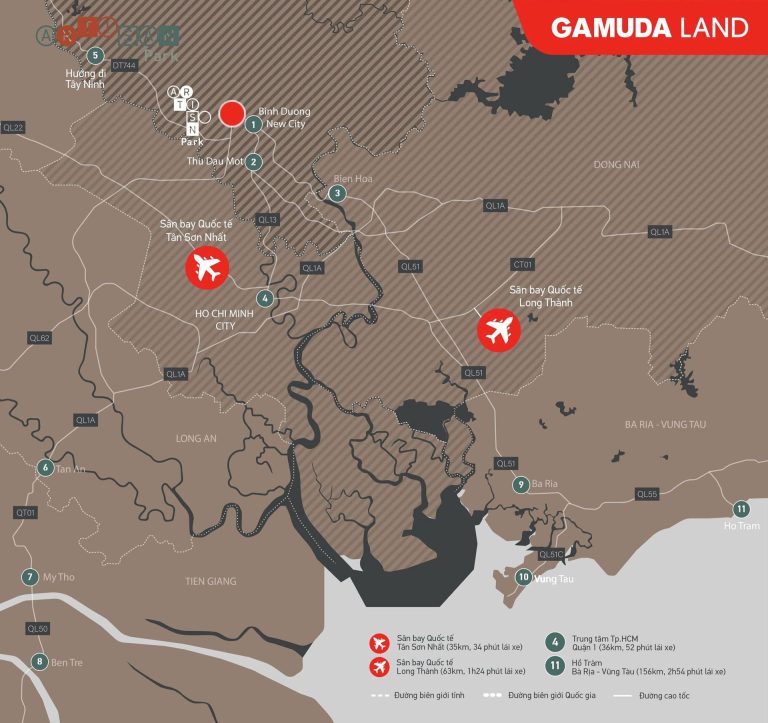 Artisan Park Gamuda Land tọa lạc tại trung tâm tỉnh Bình Dương và được đánh giá là một vị trí vô cùng đắc địa. Dự án tọa lạc ngay mặt tiền Lê Hoàn, Phạm Văn Đồng, Võ Thị Sáu của Thành Phố Mới Bình Dương – một trong những khu đô thị đang phát triển sôi động bậc nhất Việt Nam, thu hút mạnh mẽ đầu tư trong và ngoài nước.