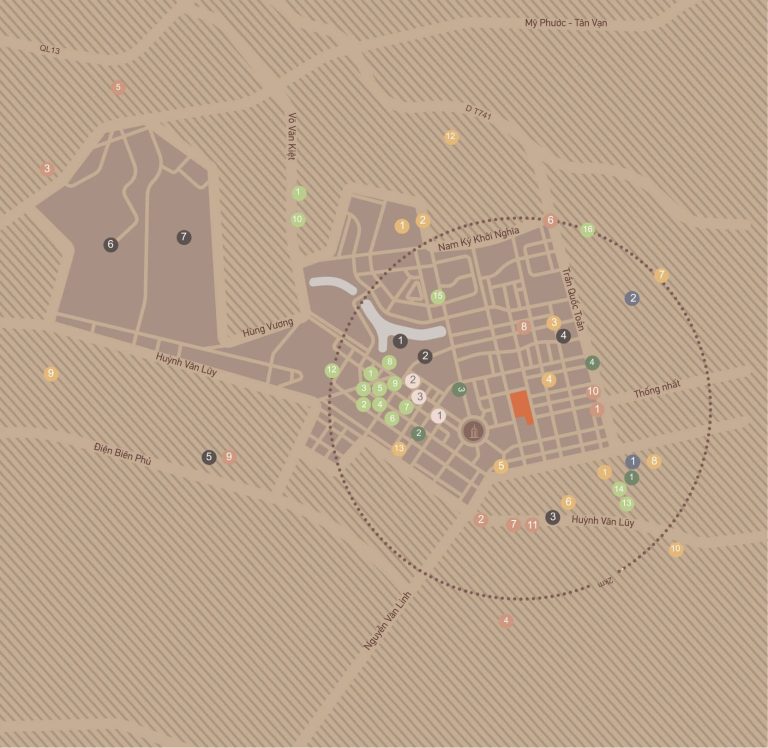 - Công viên sinh thái 75 ha Đô thị mới Bình Dương, trung tâm thể thao tiêu chuẩn quốc tế, phố tài chính, khách sạn Becamex, sân golf,.. 1 km.