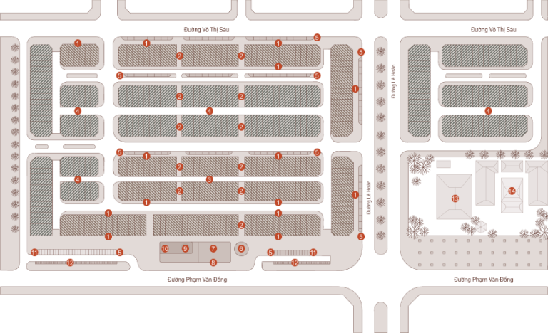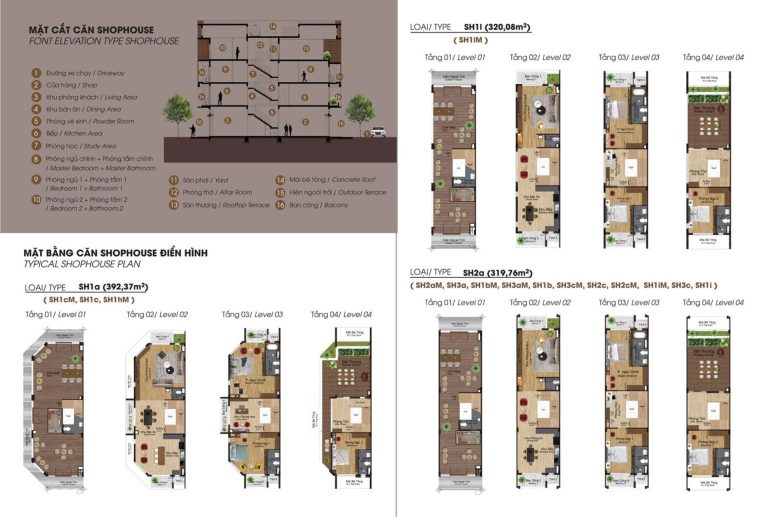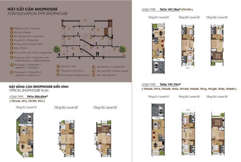 - Thiết kế: Theo phong cách Á – Âu, (175 căn nhà phố 3 tầng và 174 căn nhà phố 4 tầng)