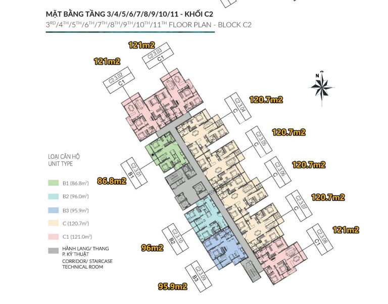 MẶT BẰNG TẦNG ĐIỂN HÌNH PHÂN KHU DIAMOND CENTERY – CELADON CITY