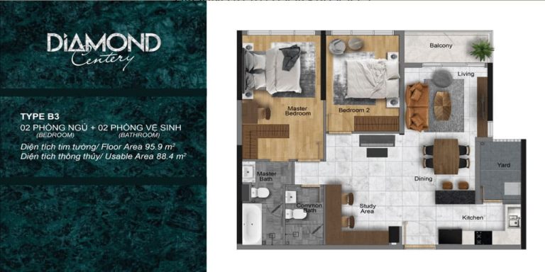 Nhờ layout tinh tế này, Diamond Centery không chỉ mang đến nơi ở hiện đại mà còn kiến tạo một phong cách sống cân bằng, nơi mỗi thành viên trong gia đình đều tìm thấy sự thoải mái và hài lòng.